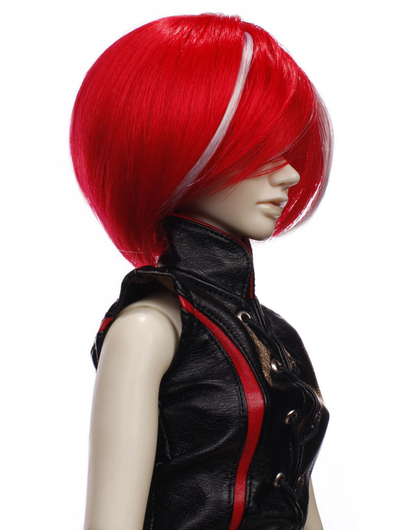 顔を優しくフレームするレイヤーのボブスタイルの人形のウィッグ W-674レッドホワイトHLの色