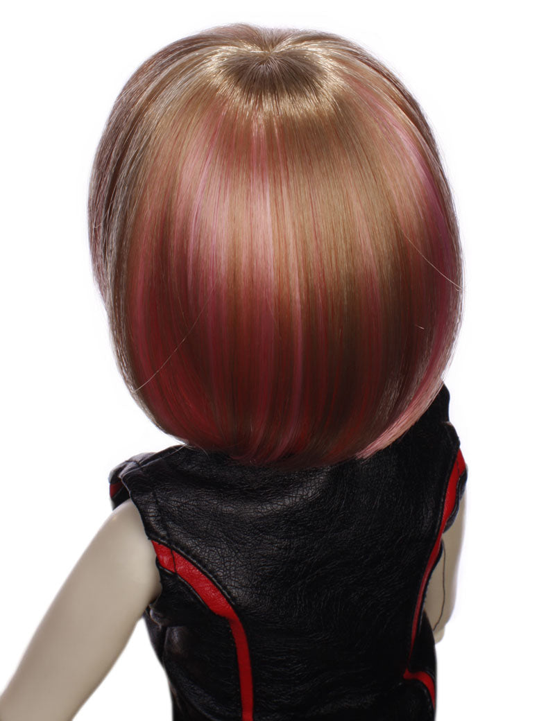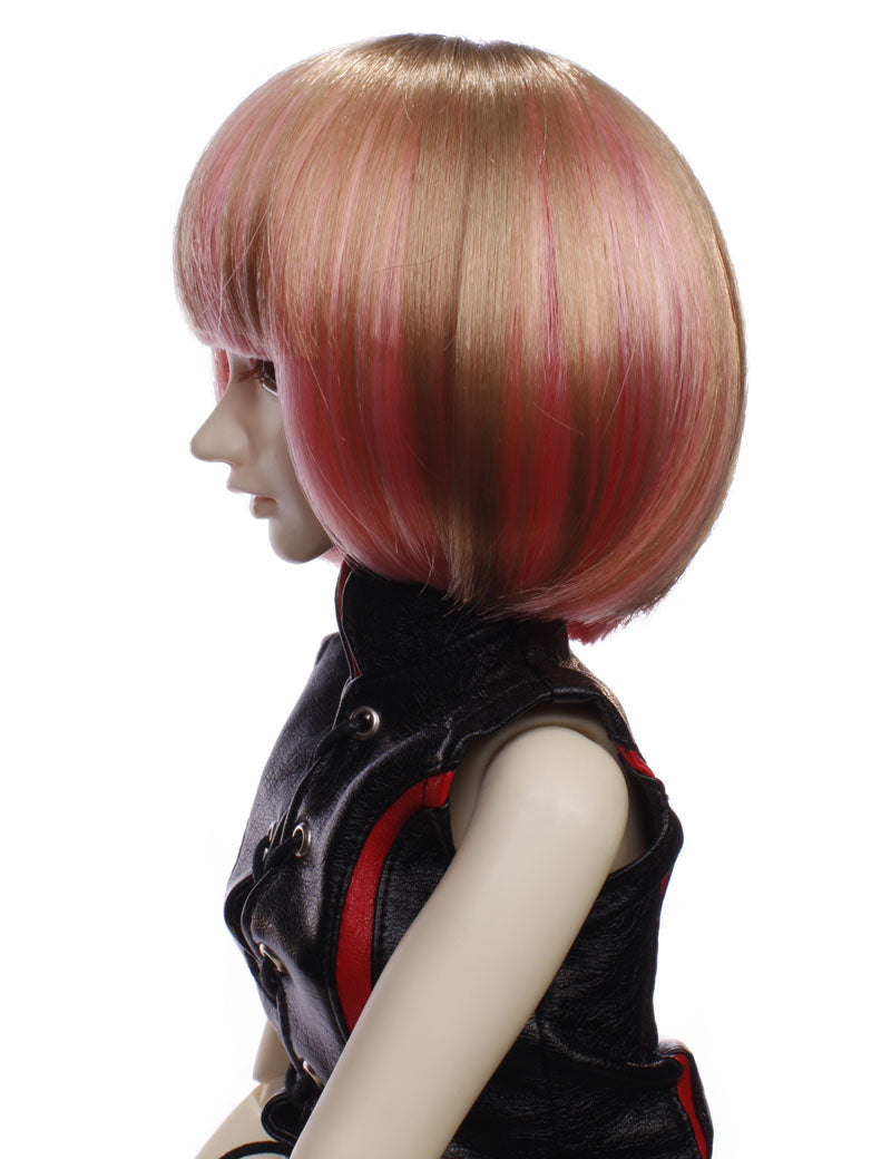 2色のベビーピンクのクラシックなショートボブスタイルの人形のウィッグ W-656 ピンク・プングHLの色