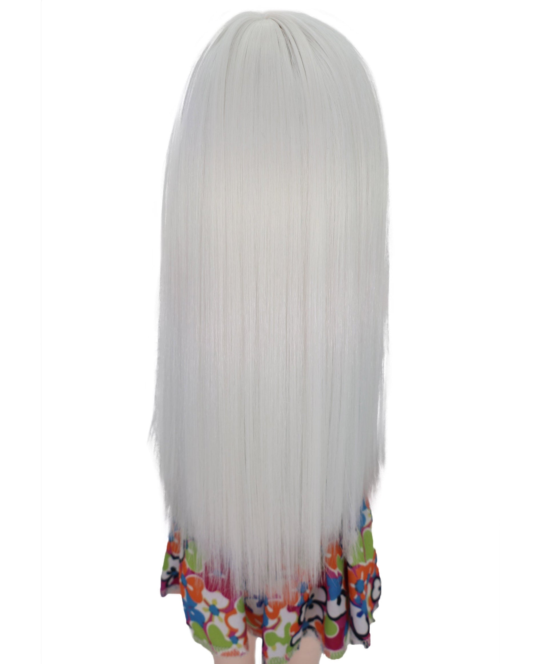 シンプルなショートボブスタイルの人形のウィッグ W-618、太い対角線のバングがあり、白い柔らかいシルキーヘア