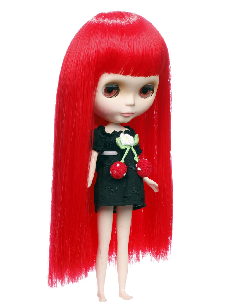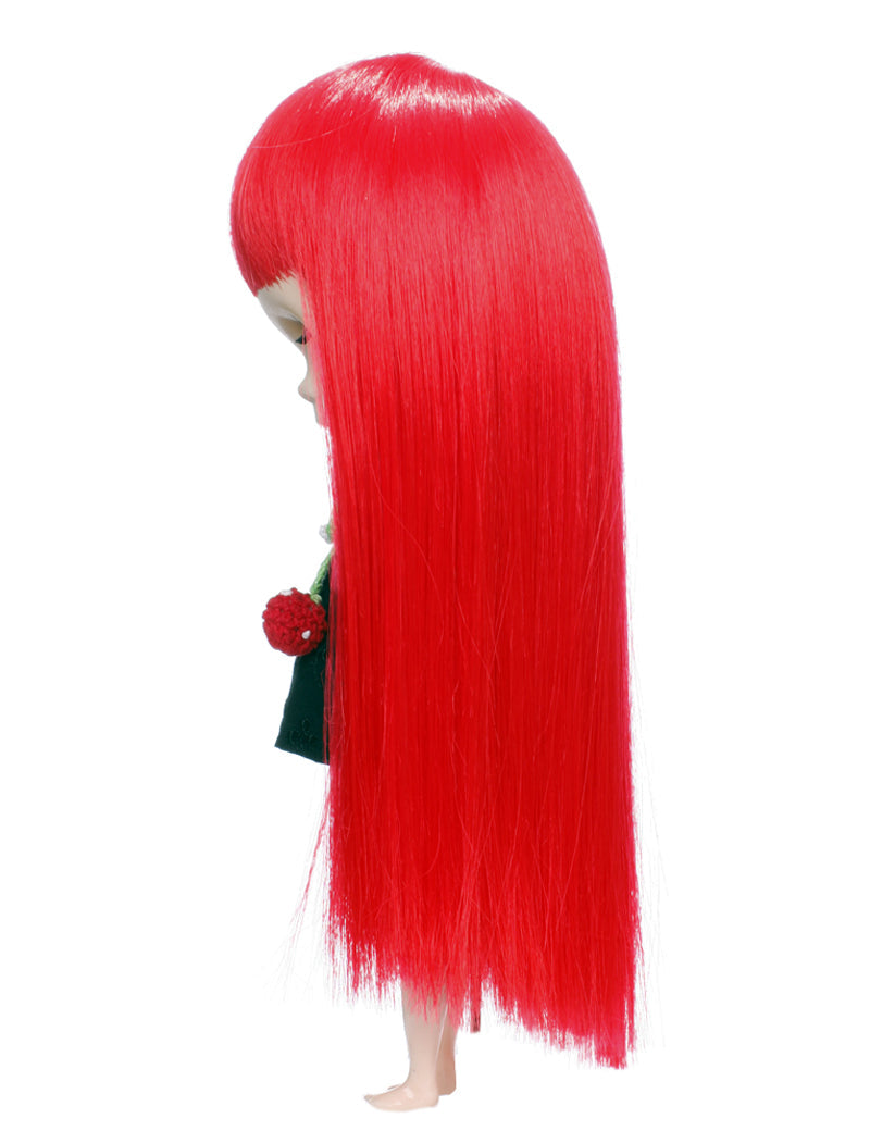 シンプルで光沢のある長いまっすぐなスタイルの人形のウィッグ B-109、整った前髪で額を覆っています