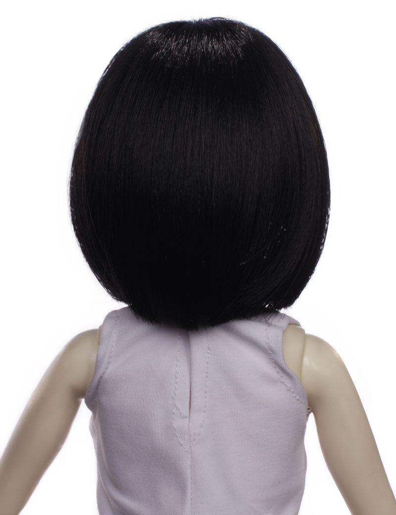 ブラントな太いバングのミディアムボブスタイルの人形のウィッグ W-661 ブラックの色。