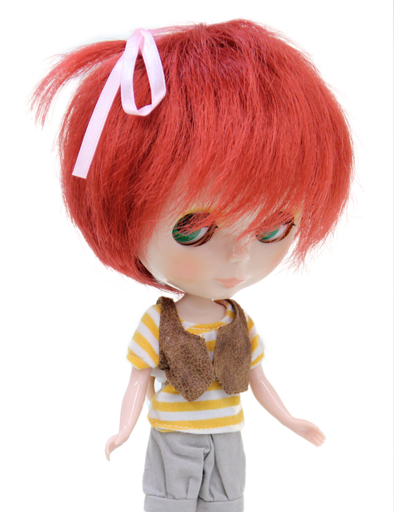 ボーイッシュなショートカットスタイルのドールウィッグ B-156 トップに小さなテール、シンプルなショートスタイル、長いレイヤーバングス、テクスチャ仕上げ