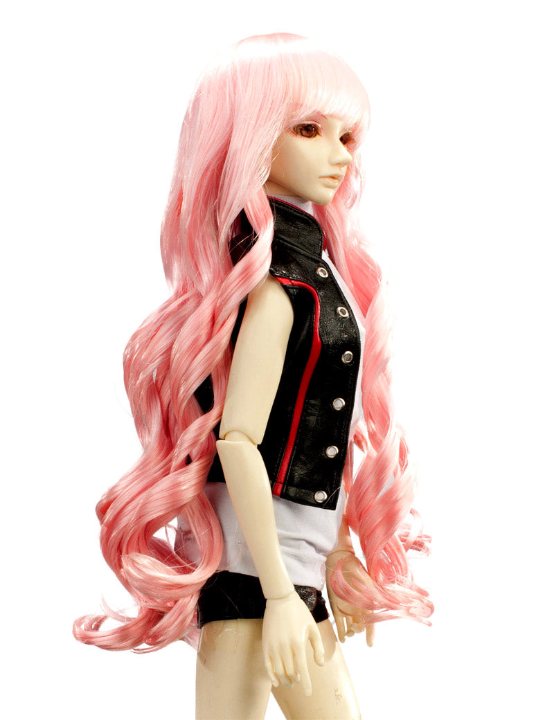 ツヤのある髪の毛の層状のカールがあるロングヘアスタイルの人形のウィッグ W-710 ベビーピンクの色