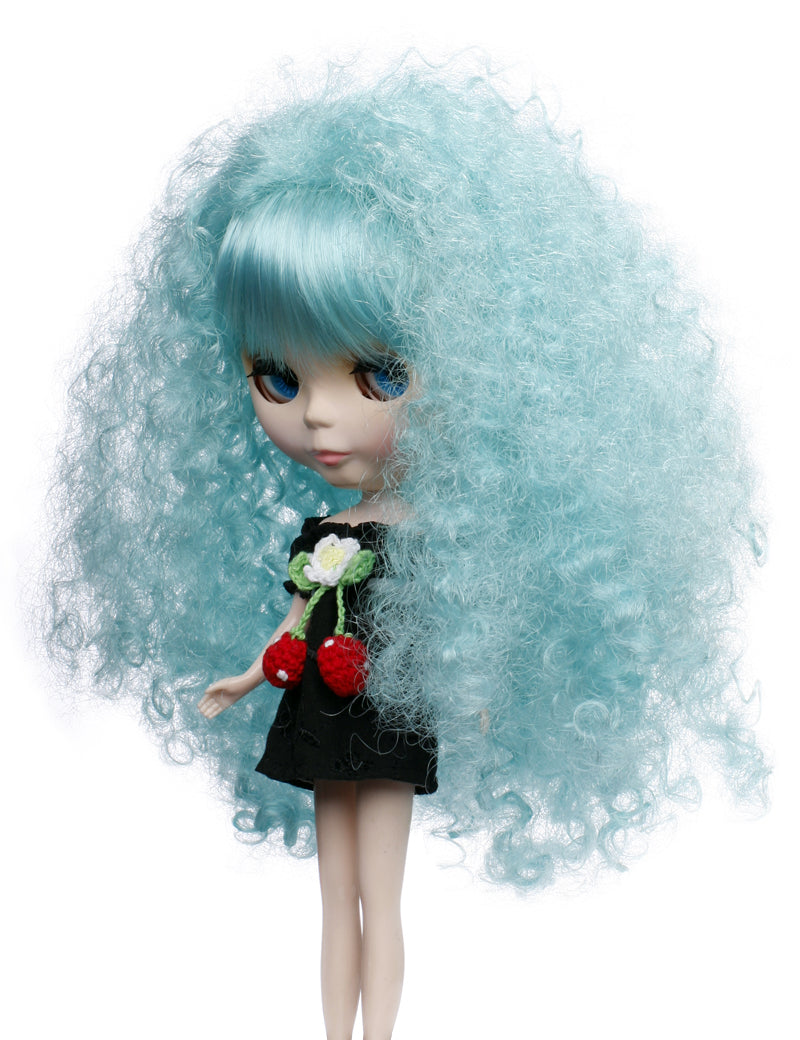 可愛らしい綿飴のようなスタイルの人形のウィッグ B-122、自然なカールを最大ボリュームに引き立てるためにサイド全体でレイヤーカット