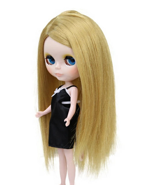 スリックで滑らかな長いストレートスタイルのドールウィッグ B-141 端の周りに微妙なレイヤーカットが施され、軽やかな仕上がりになっています