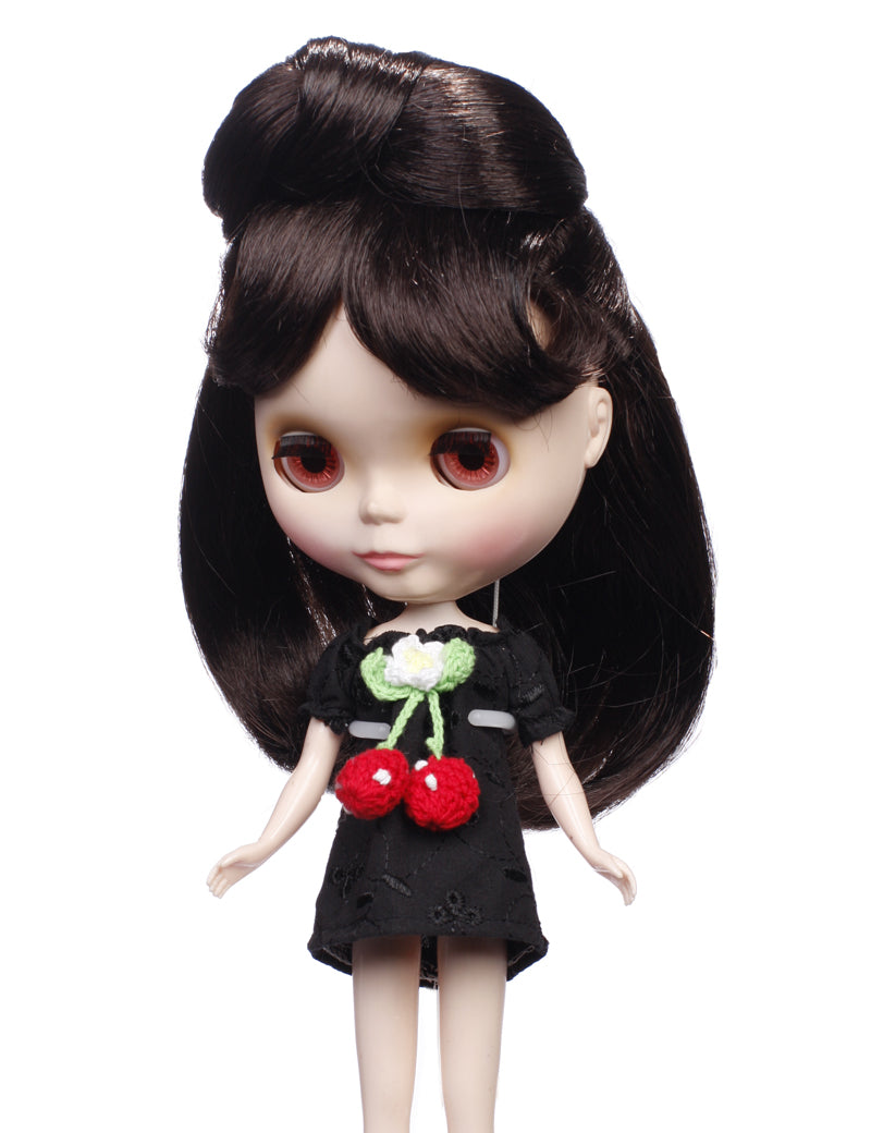 これは大きなチグノンをトップに持つハーフアップのスタイルの中くらいの人形のウィッグ B-111 で、丸みのある形で終わっています